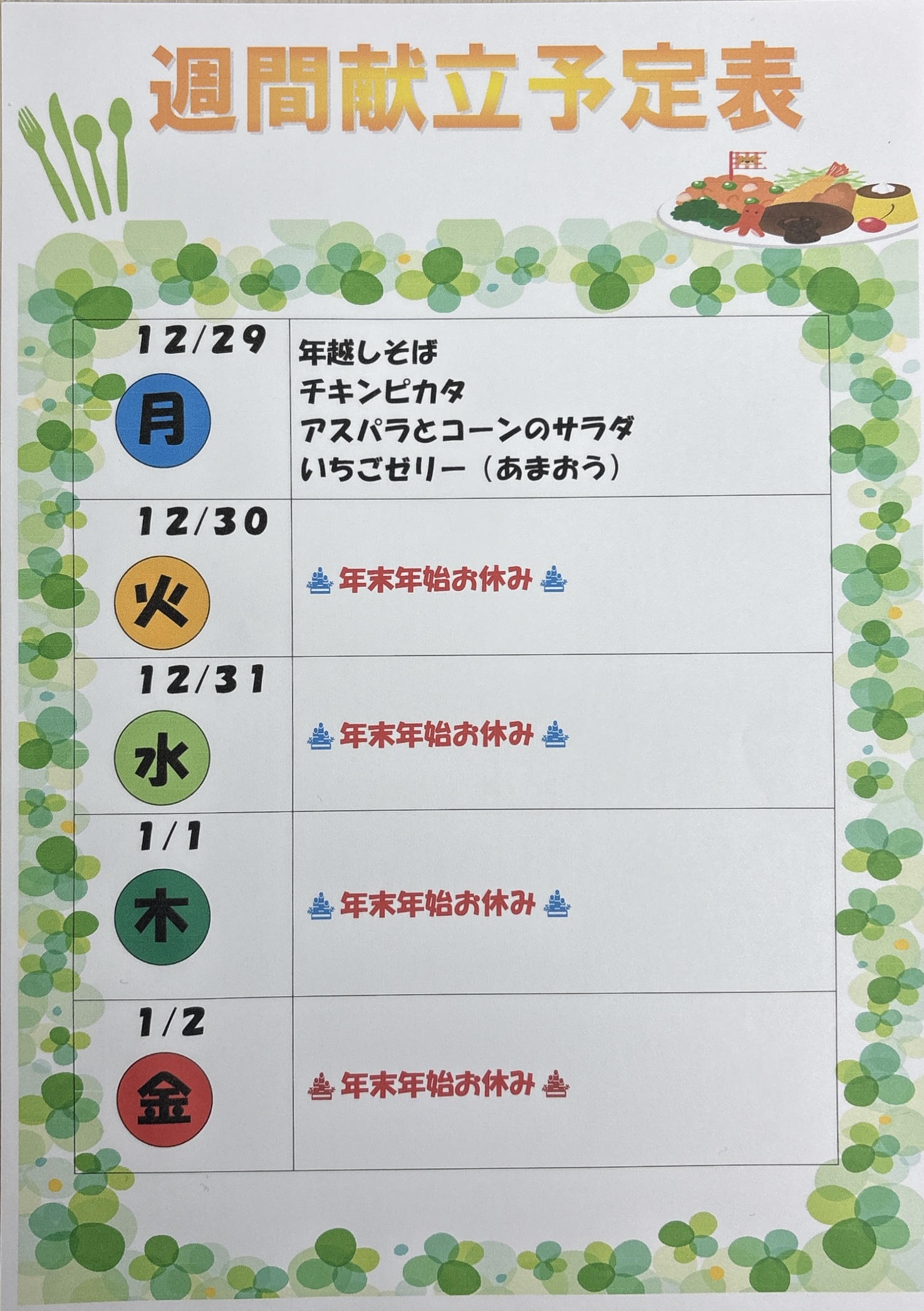 来年もおいしいご飯でみなさんの健康をサポートしてまいりますよ💪