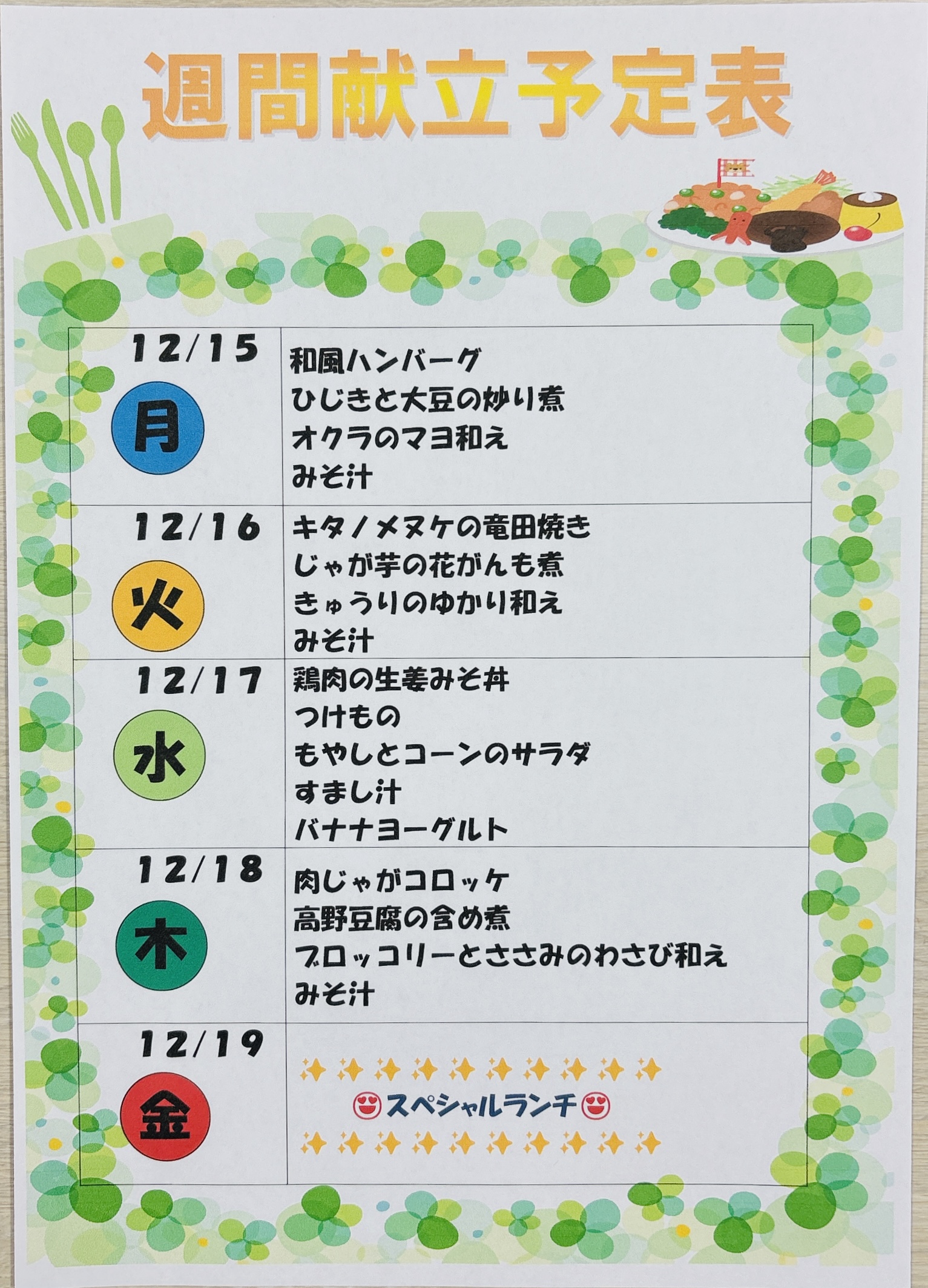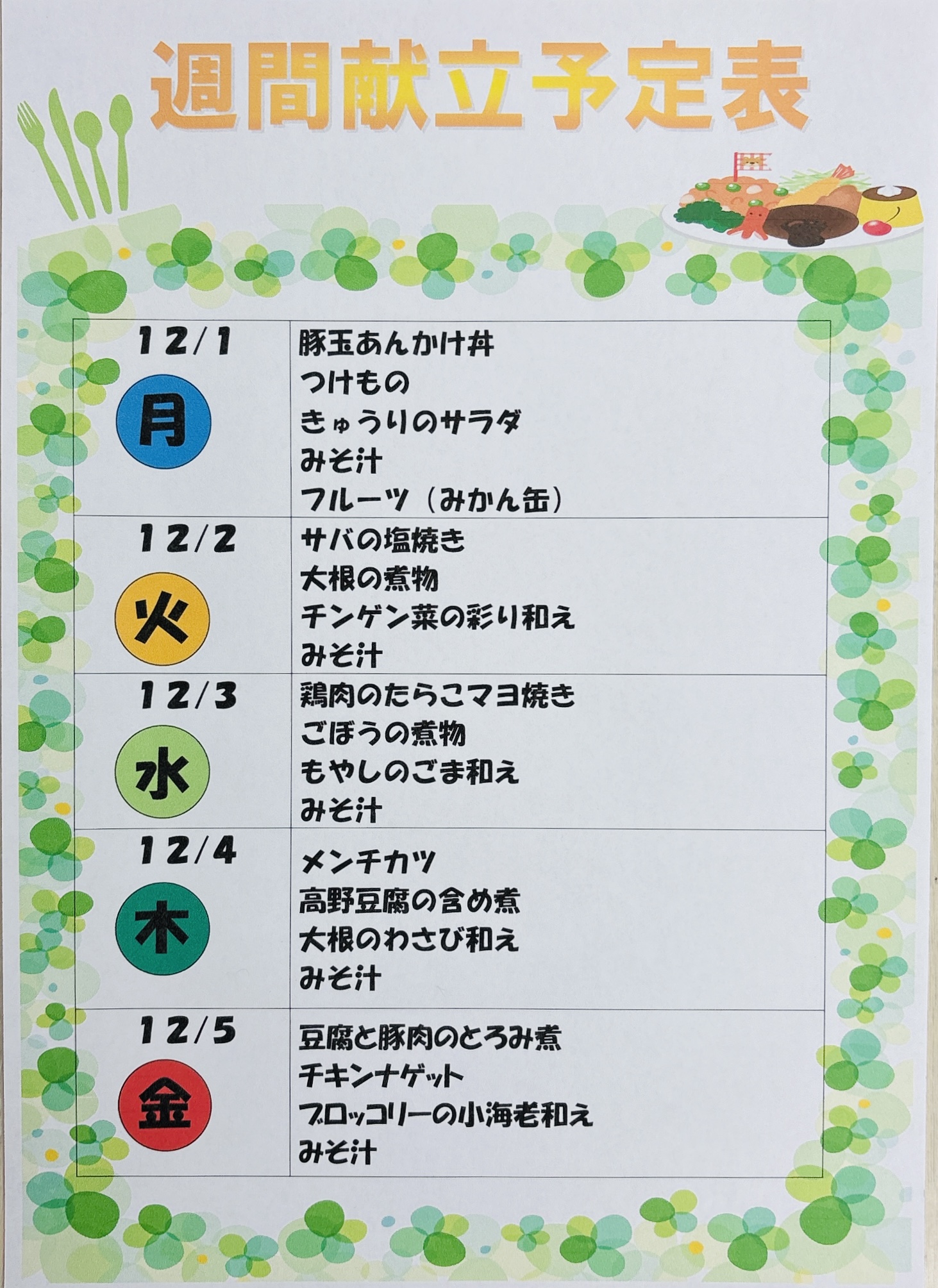 最後に来週の献立をお知らせします📄