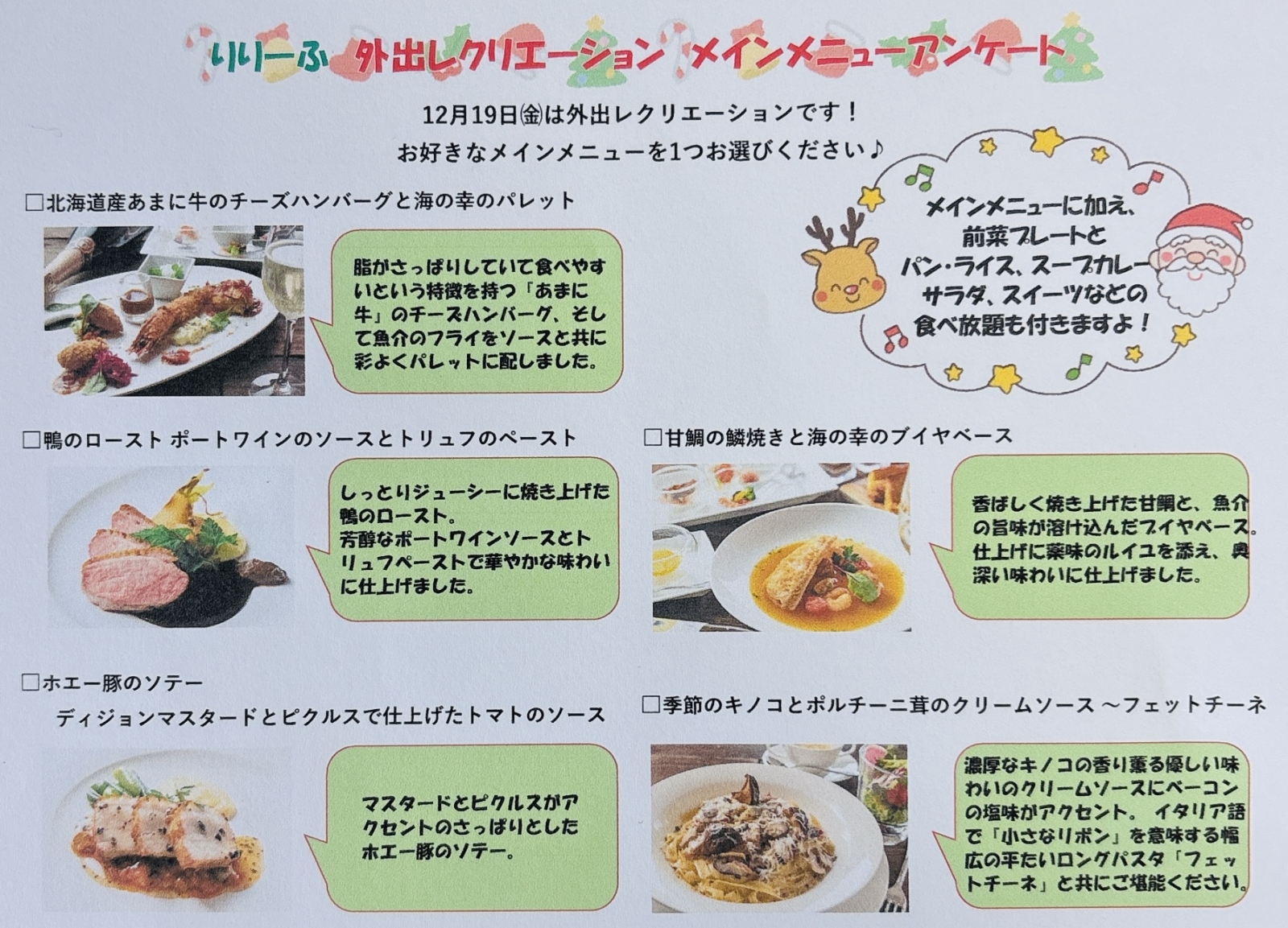 最後に、来週のレクリエーションのアンケートについて
