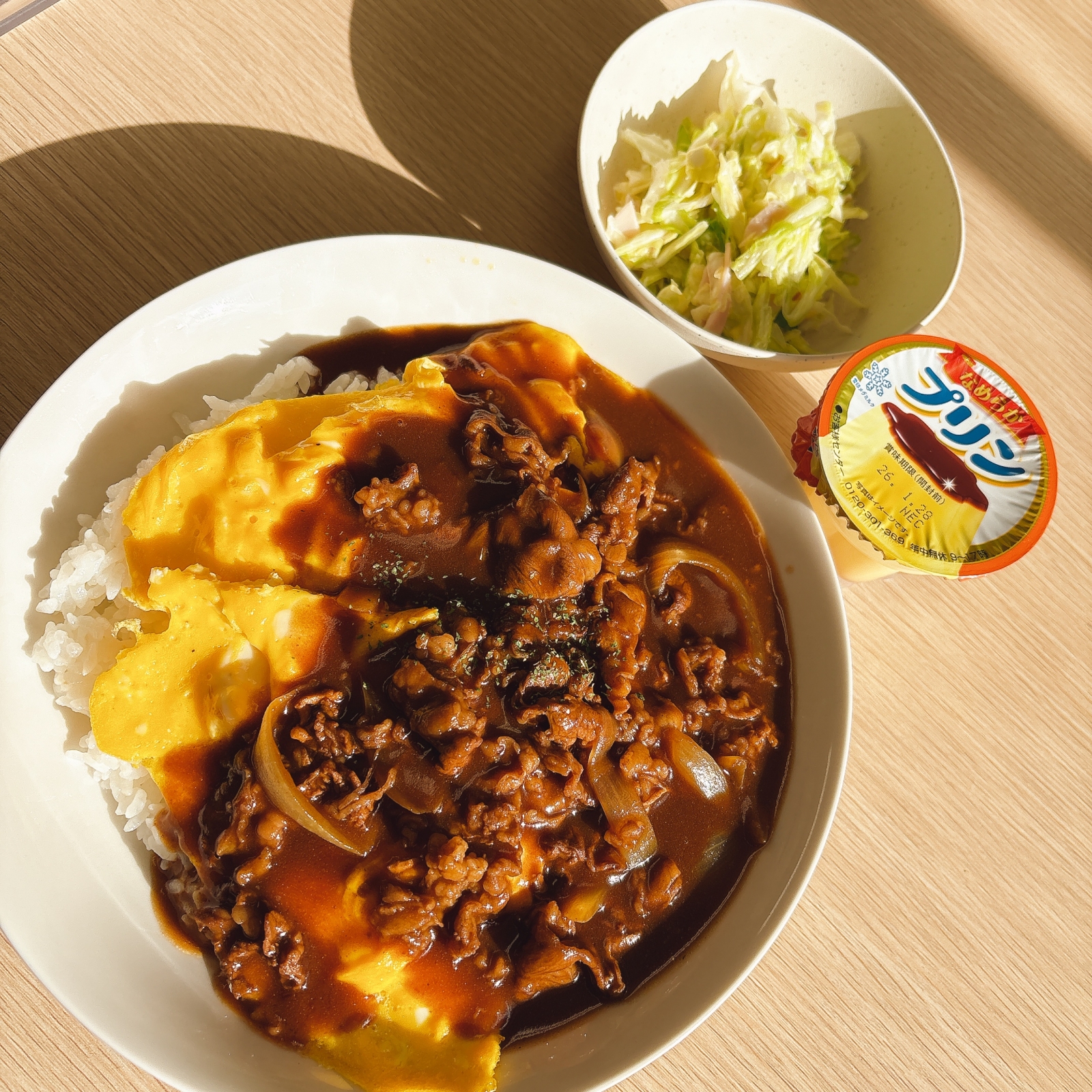 『 🍛オムハヤシとキャベツサラダ🥗とプリン🍮 』
