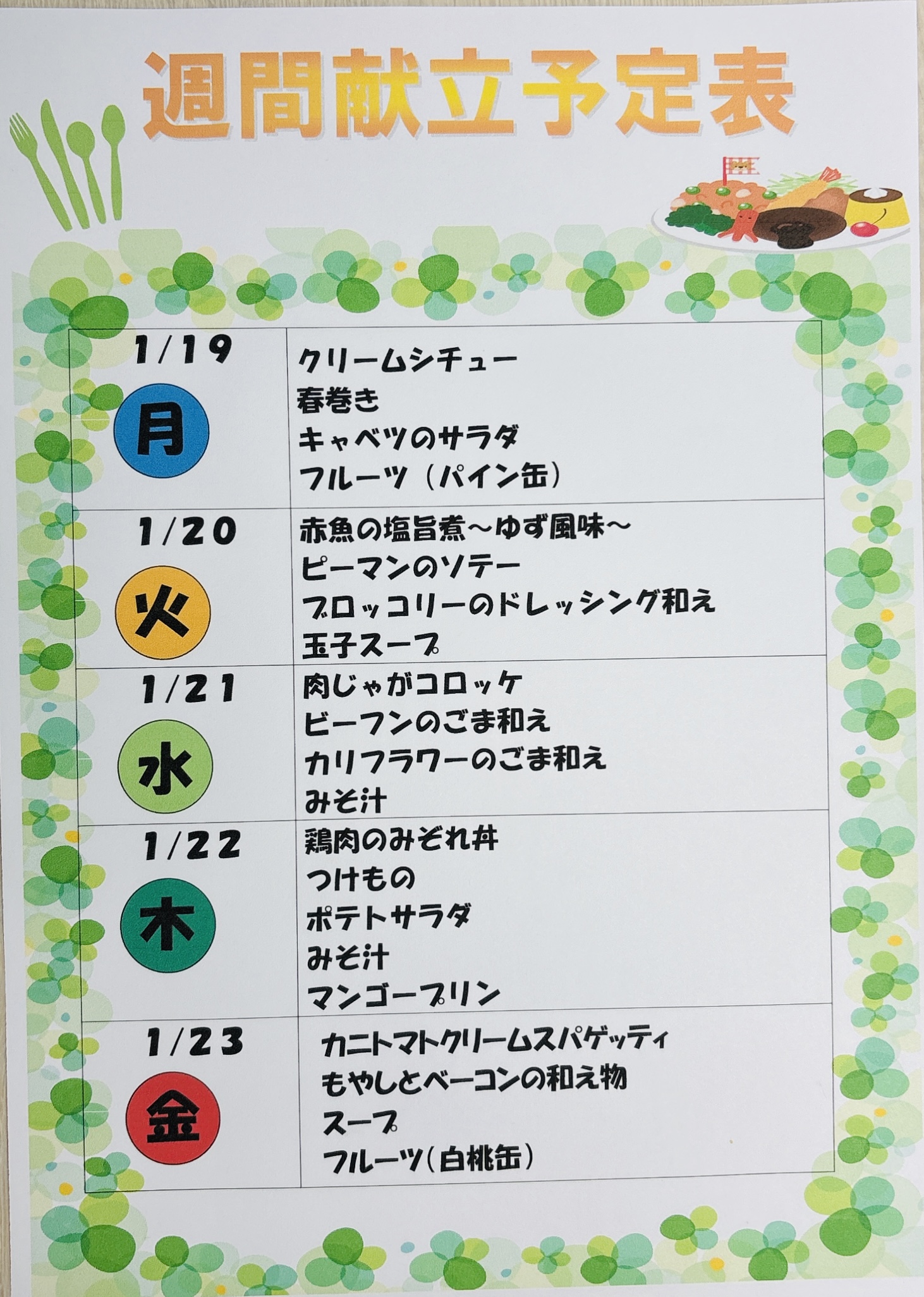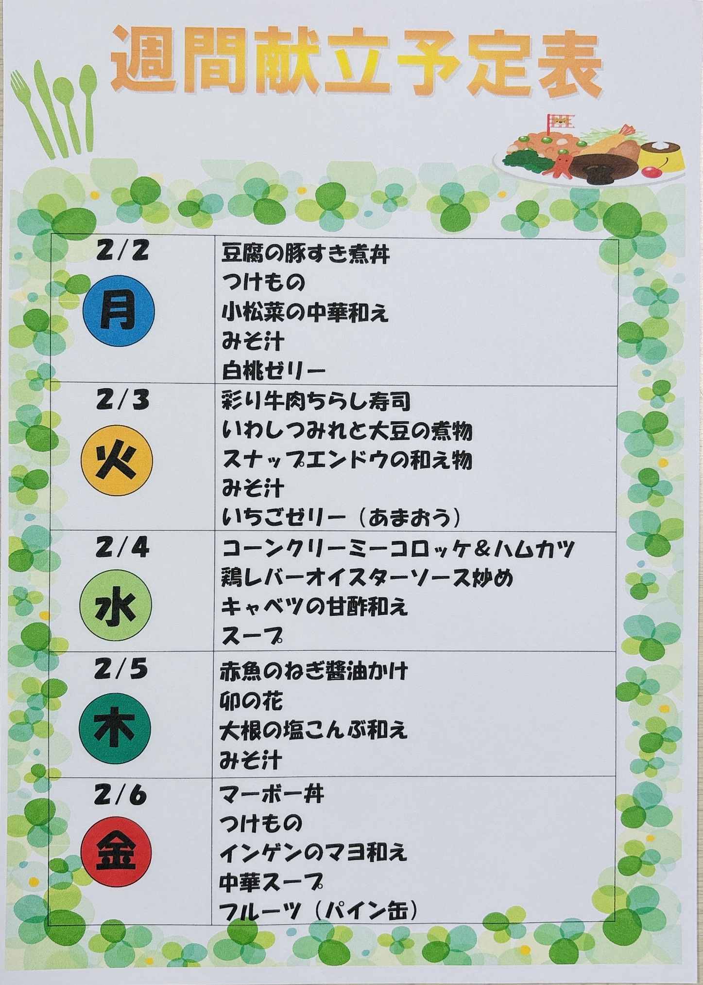 最後に来週の献立をお伝えします📅